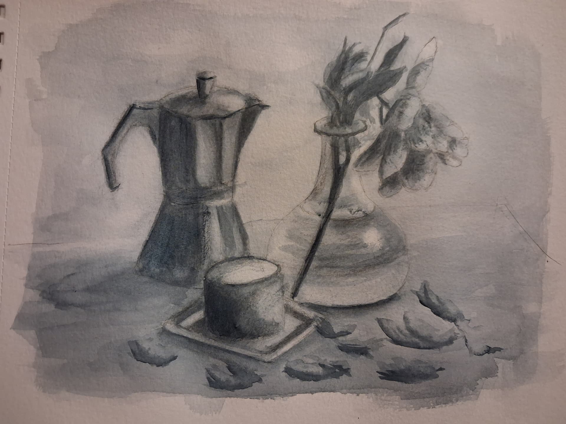 Ho usato il grigio di Payne. Non so se ci sono le macchie. Come è venuto? Il disegno è un pò storto e mi sono attenuta poco alla reference dando sfogo all’interpretazione. Non sono riuscita a far emergere il bianco della luce. La prossima volta punterò a questo