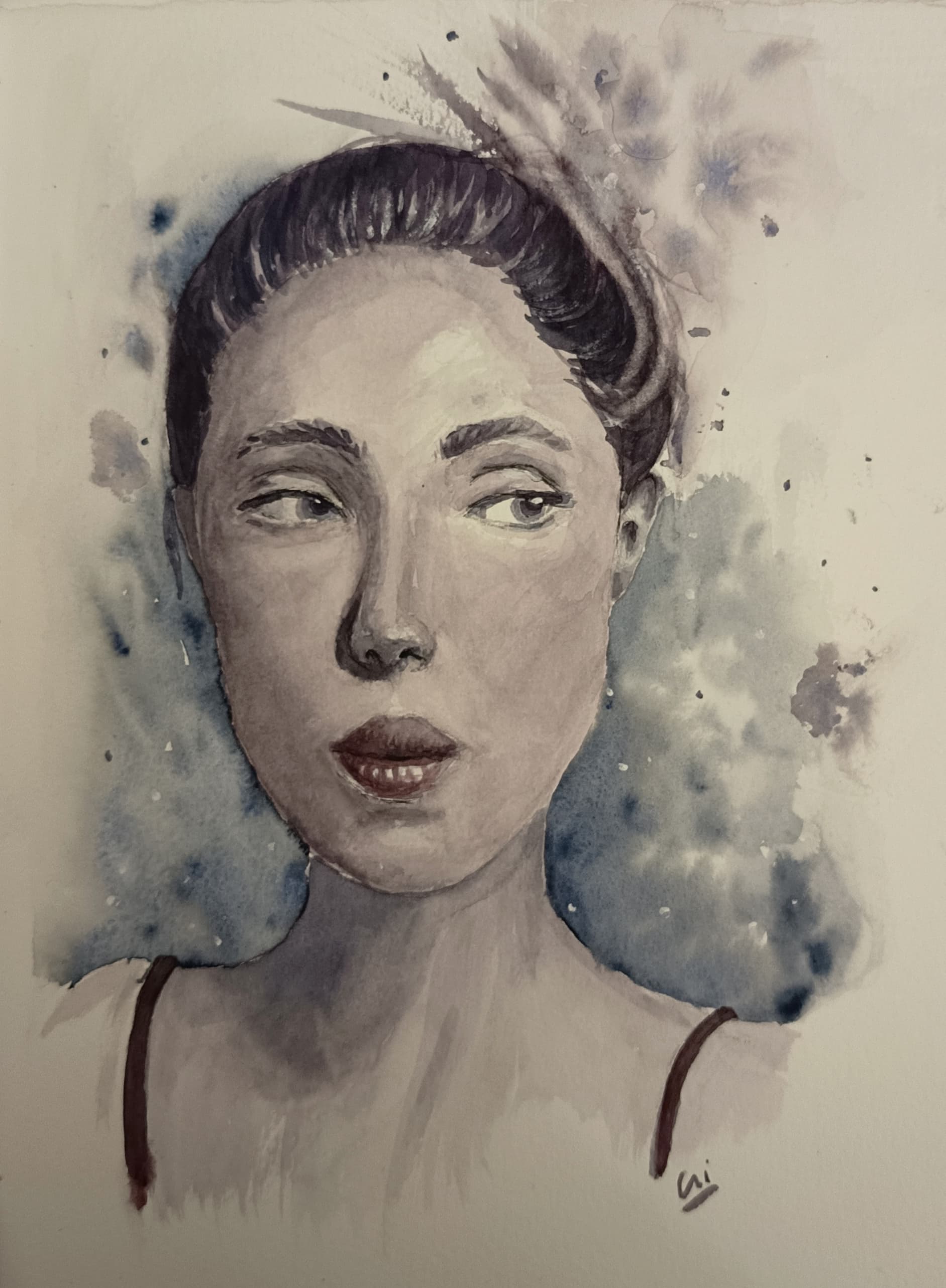 finalmente un po’ di tempo per dipingere…. Ecco uno dei disegni per il corso sul ritratto.
