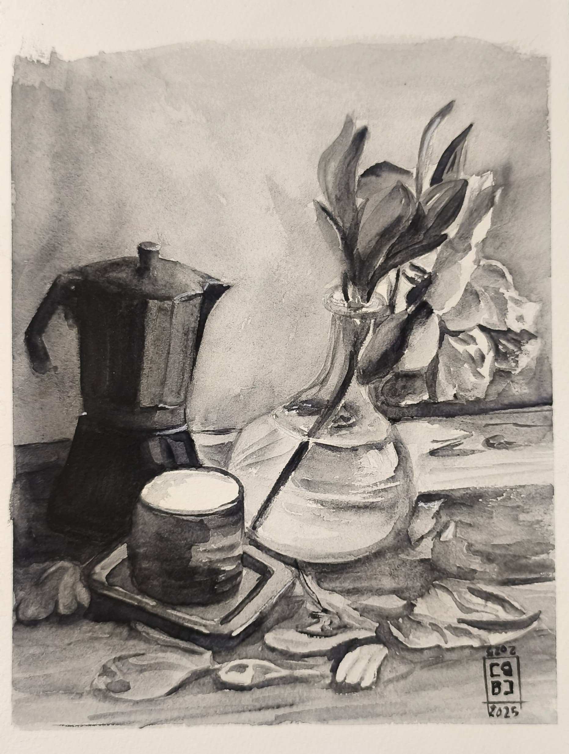 Il mio monocromo usando solo carboncino liquido Schmincke (semi d’uva)
