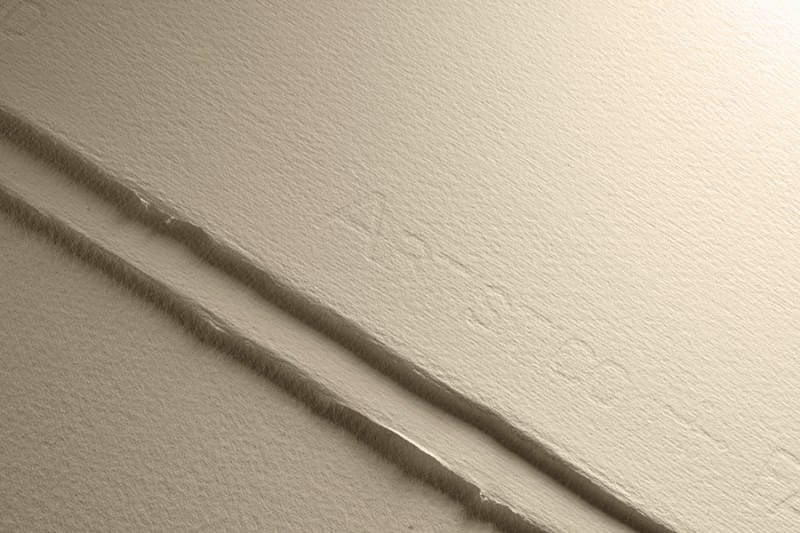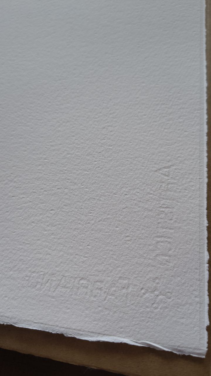 Acquistando i fogli sfusi 56x76 Fabriano Artistico, mi segno il verso con il marchio prima di tagliare in fogli piu’ piccoli. Visto che pero’ il marchio è impresso “a specchio” (vedi foto), mi è venuto il dubbio che il verso da usare sia quello opposto